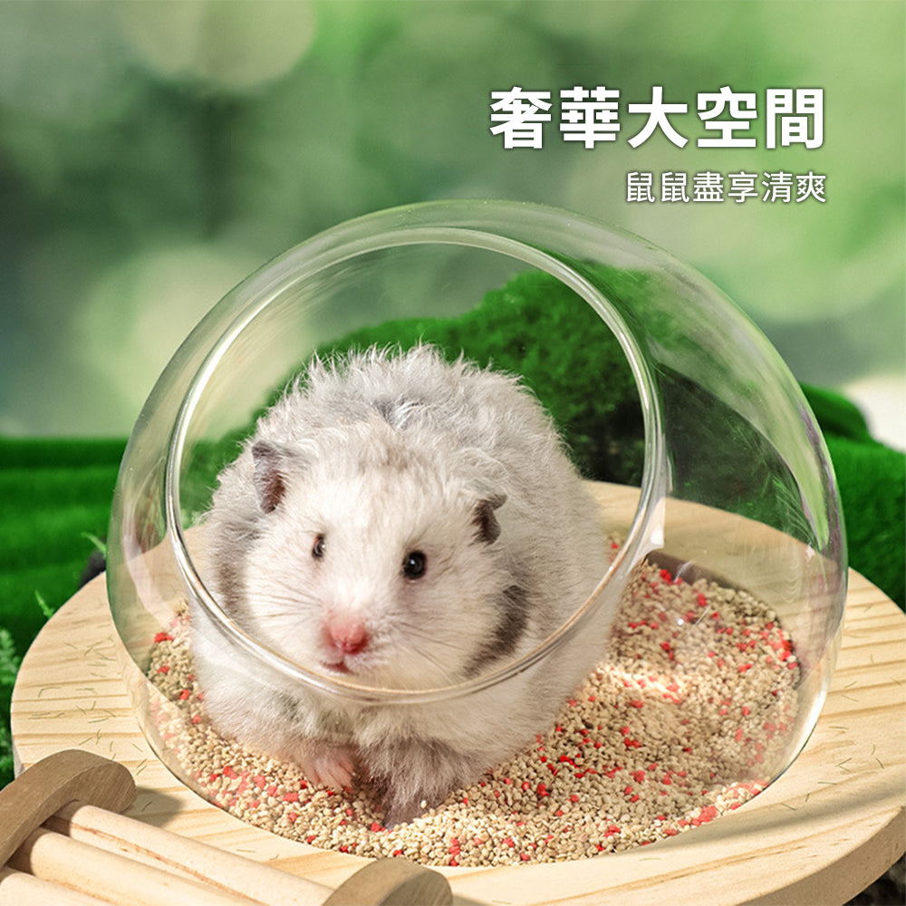 MY 倉鼠實木玻璃球浴室 倉鼠浴室太空艙浴房 廁所兩用 洗澡沐浴盆 尿砂浴沙防飛濺用品