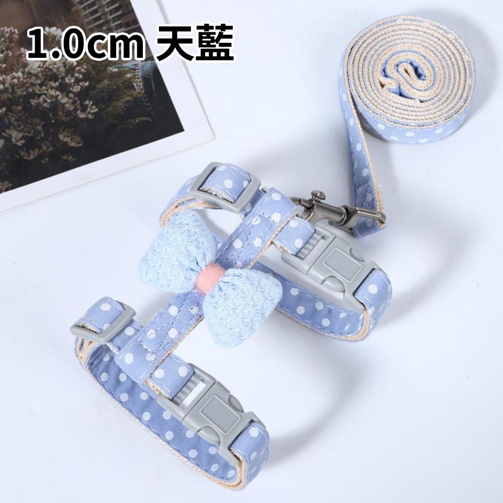 WWC夏日波點蝴蝶結貓用胸背帶 寵物牽繩 寵物胸背帶 貓用牽引繩套裝 遛貓繩 貓咪牽繩