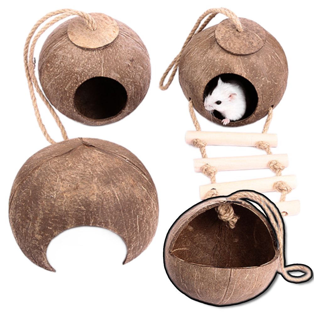 YEE椰殼倉鼠窩 倉鼠躲避屋 倉鼠椰子窩 天然椰子殼 倉鼠磨牙小屋 倉鼠籠內造景 倉鼠吊窩 倉鼠空中爬梯
